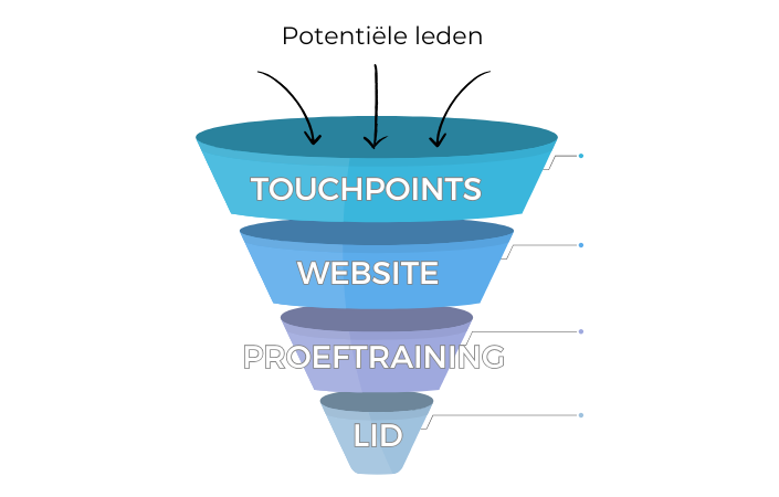 Voor het aantrekken van nieuwe leden gebruiken we het trechtermodel (de zogeheten funnel).
